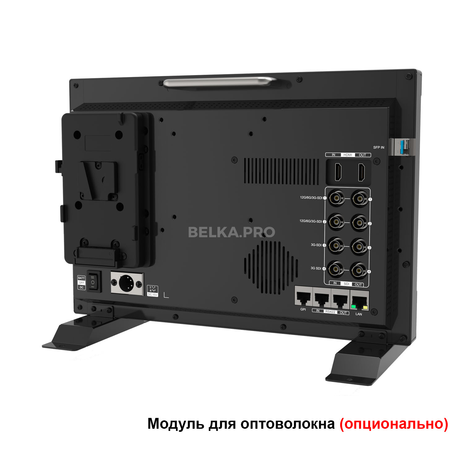 Блок питания 15В, XLR; Флэшка USB с драйверами; Подставка x2; Держатель для аккумулятора с V-образным креплением; Пластина VESA для крепления аккумулятора