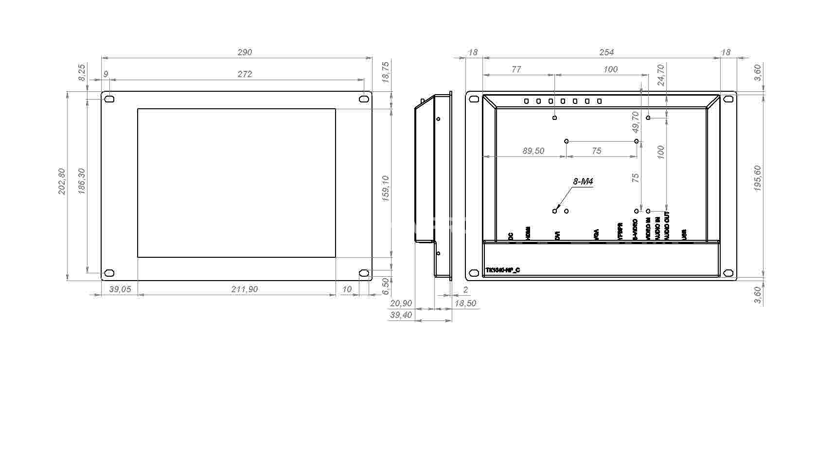 Встраиваемый сенсорный монитор 10,4" PL104SMK6-07HR41-HDV