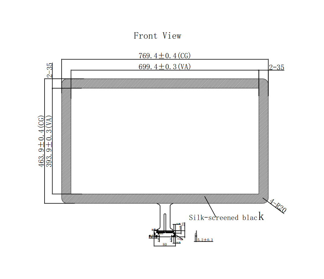 Габариты сенсорного экрана, мм