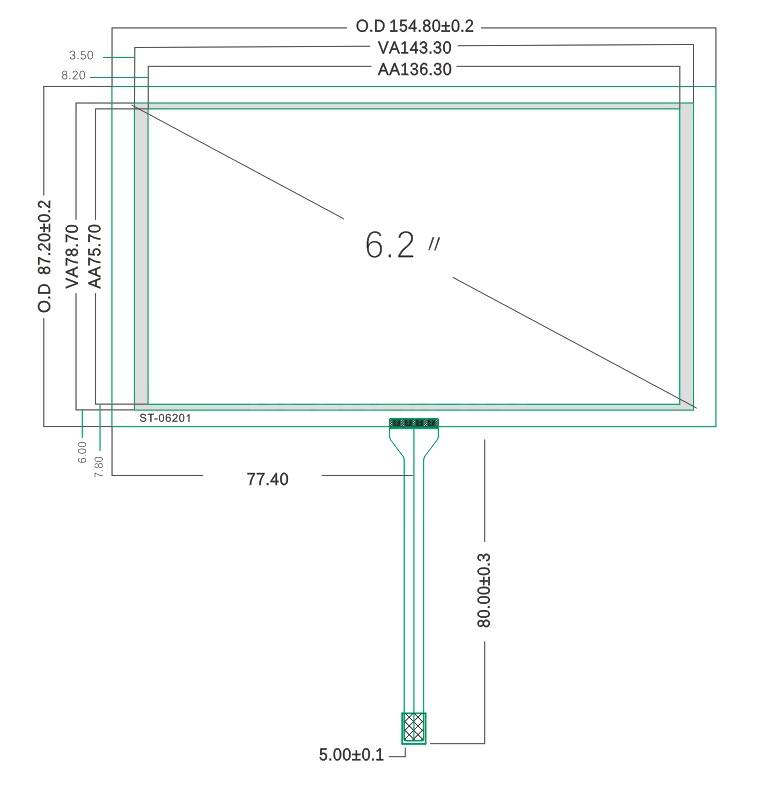 Габариты сенсорного экрана, мм